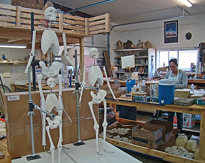 This is not his first invention, but it is the first one to go into mass-production. Payne has improved, and made affordable, the sculpture armature for the human figure... and is working on one for horses as well. Now a sculptor can buy sturdy, flexible skeletons that give them the basic form for several different sizes of human figures, attached to a strong, adjustable steel post that holds the sculpture in a variety of positions. Each skeleton has been slightly reduced to anticipate the addition of clay that will become the muscle and skin and thus the final surface, making each sculpture as accurate as possible.
